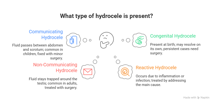 Different types of hydrocele need different treatments. Identifying the correct type helps your doctor plan the right hydrocele treatment or laser hydrocelectomy.